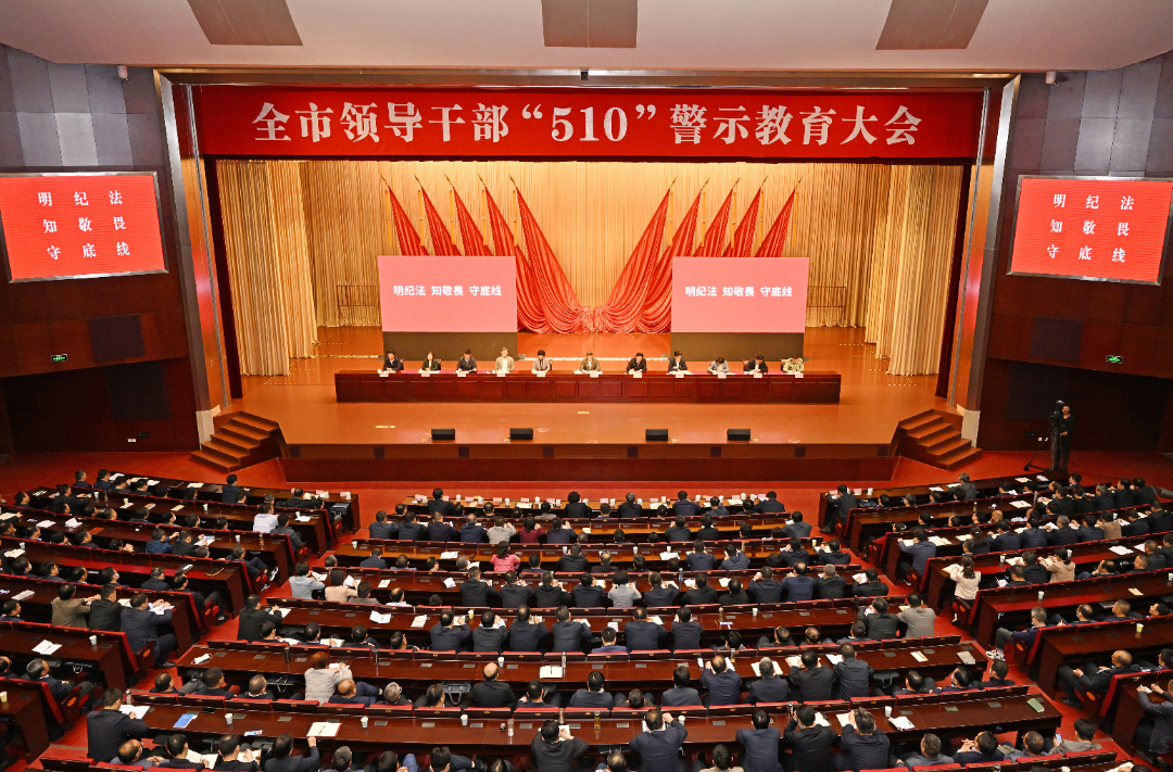 5月10日,市委召开全市领导干部“510”警示教育大会,深入学习贯彻党的二十大和习近平总书记参加江苏代表团审议时重要讲话精神,全面落实中央和省委部署,通过以案明纪、警钟长鸣,推动各级党员干部真正做到自重自省、自警自励,永葆忠诚、干净、担当的政治本色,为全面推进中国式现代化盐城新实践开好局、起好步提供坚强政治保证。市委书记周斌出席并讲话。市人大常委会主任王荣、市政协主席陈红红出席,市委副书记、统战部部长羊维达主持。