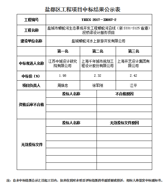 盐城市蟒蛇河生态景观开发工程蟒蛇河沿线(新S331-S125省道)段桥梁设计服务项目