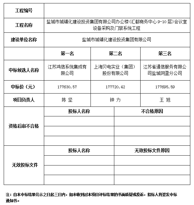 天行体育app官网·(中国大陆)官方网站办公楼(汇都商务中心9-10层)会议室设备采购及门禁系统工程中标结果公示