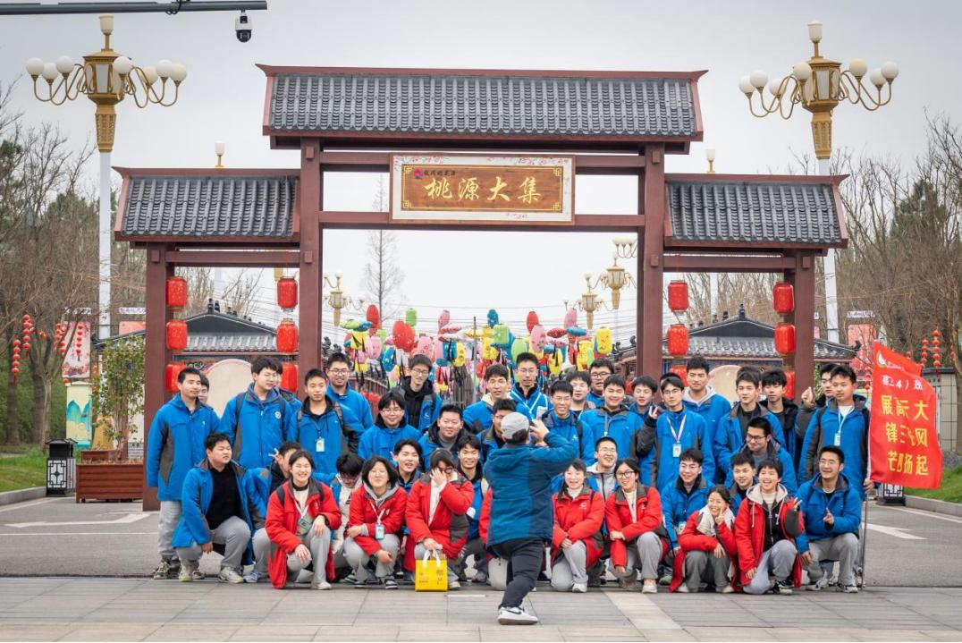 春风拂面,花香满径,九曲桥倒映水中,桃花阁雅致清幽,师生在桃源大集打卡拍照,桃花源内的景色引人驻足。板栗大道上,学生们穿行其中,时不时回头张望,蜿蜒曲折的步道、随风飘扬的班旗、漫步其中的游人,共同构成了一幅春天的美丽画卷。