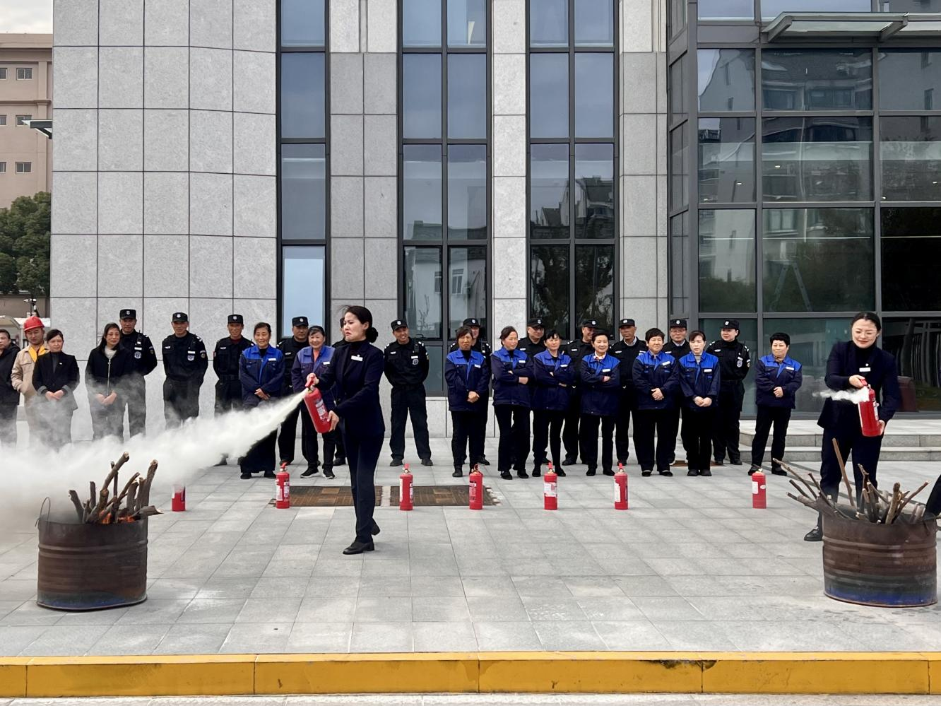 每年十一月是国家消防安全月,今年主题是“全民消防,生命至上——安全用火用电”,城服集团物业公司以此为契机,在住宅、办公楼、工业厂房等项目点组织消防演练活动,做到演练全覆盖。演练模拟真实火灾场景,涵盖火情报警、人员疏散、初期扑救及伤员救护等环节,确保员工熟练掌握消防器材使用与应急流程。同时,物业公司联合社区、消防部门开展宣传培训,通过案例警示、实操教学提升居民用火用电安全意识,重点排查了老旧小区电气线路、电动自行车违规充电等隐患,推动形成“人人关注消防、事事注重预防”的良好氛围。